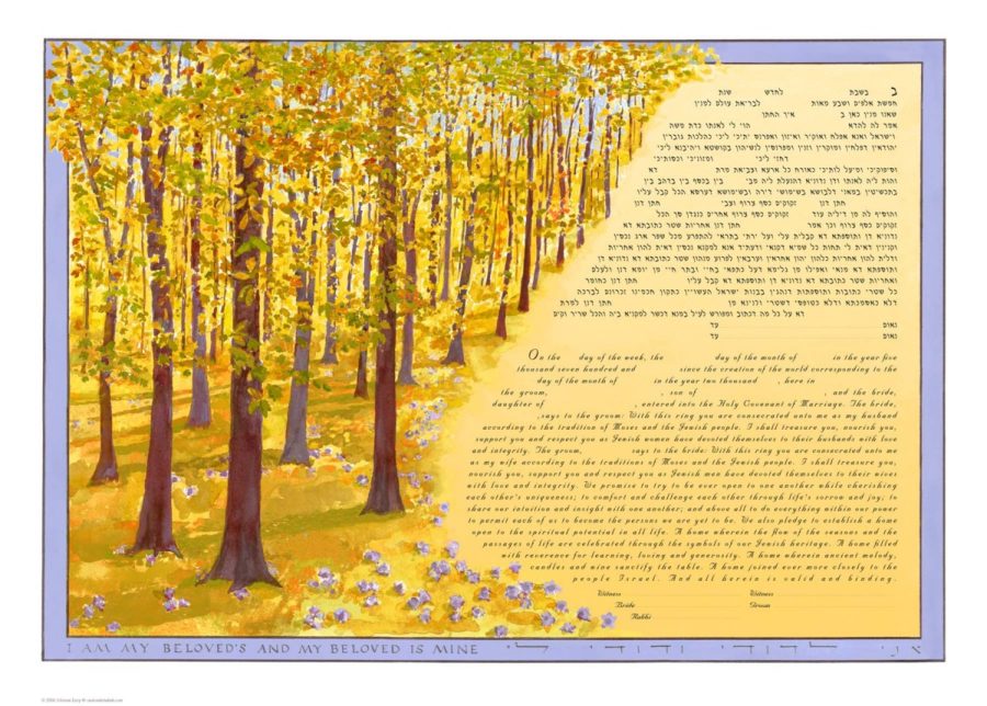 Unique custom ketubot and ketubah prints. Modern and traditional ketubah designs by artist Miriam Karp. Original designs with hand-lettered calligraphy.