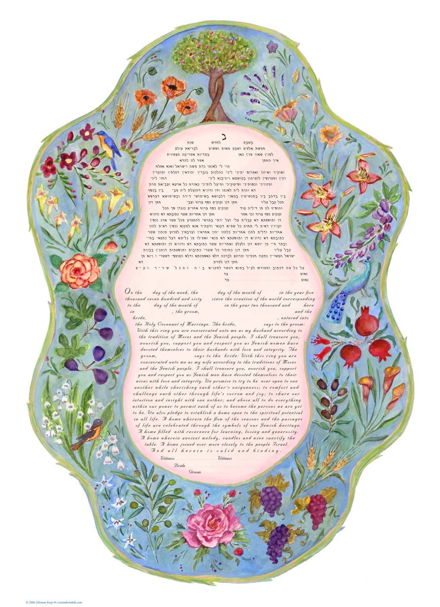 You’ll be asked to choose one of my texts, included in the price of a ketubah print (see Choosing your Ketubah Texts below) or you can supply your own for an additional charge. After I receive your order I will send a pdf of the texts to be approved by you and your officiant.