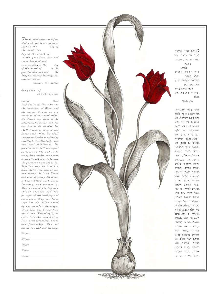 Unique custom ketubot and ketubah prints. Modern and traditional ketubah designs by artist Miriam Karp. Original designs with hand-lettered calligraphy.