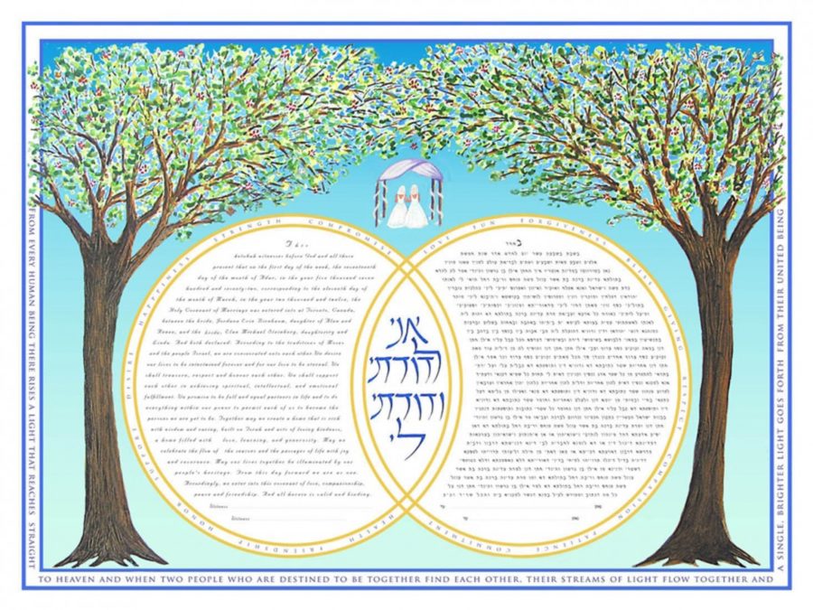 These Ketubah Prints are available as seen in the gallery. In the ordering process you’ll choose the appropriate print version, the material on which it’s printed, whether or not you want it personalized, the text(s), your ideas for customization, and your method of shipping.
