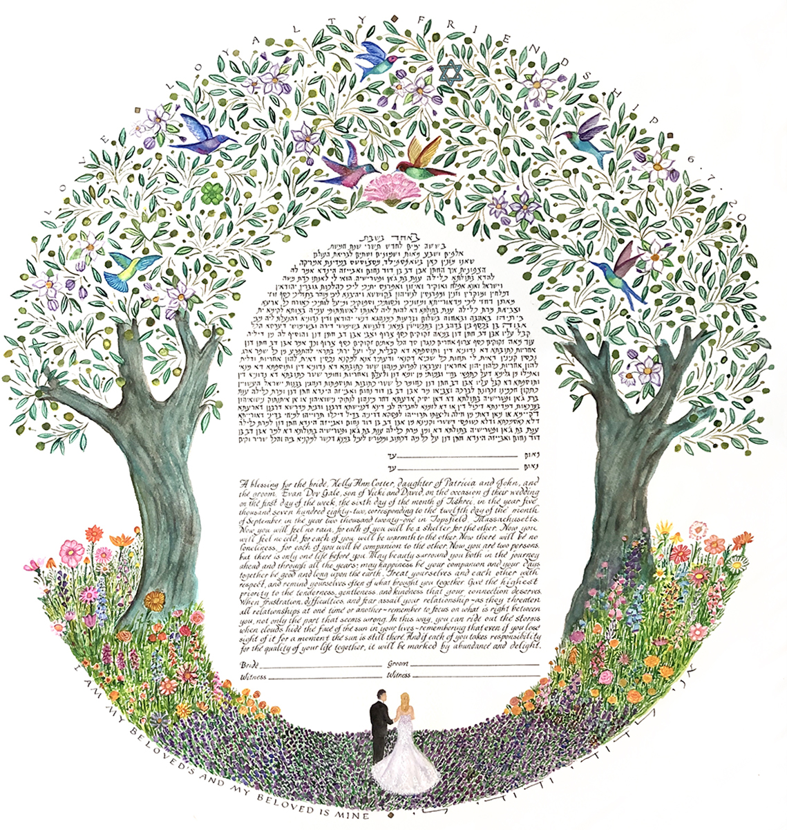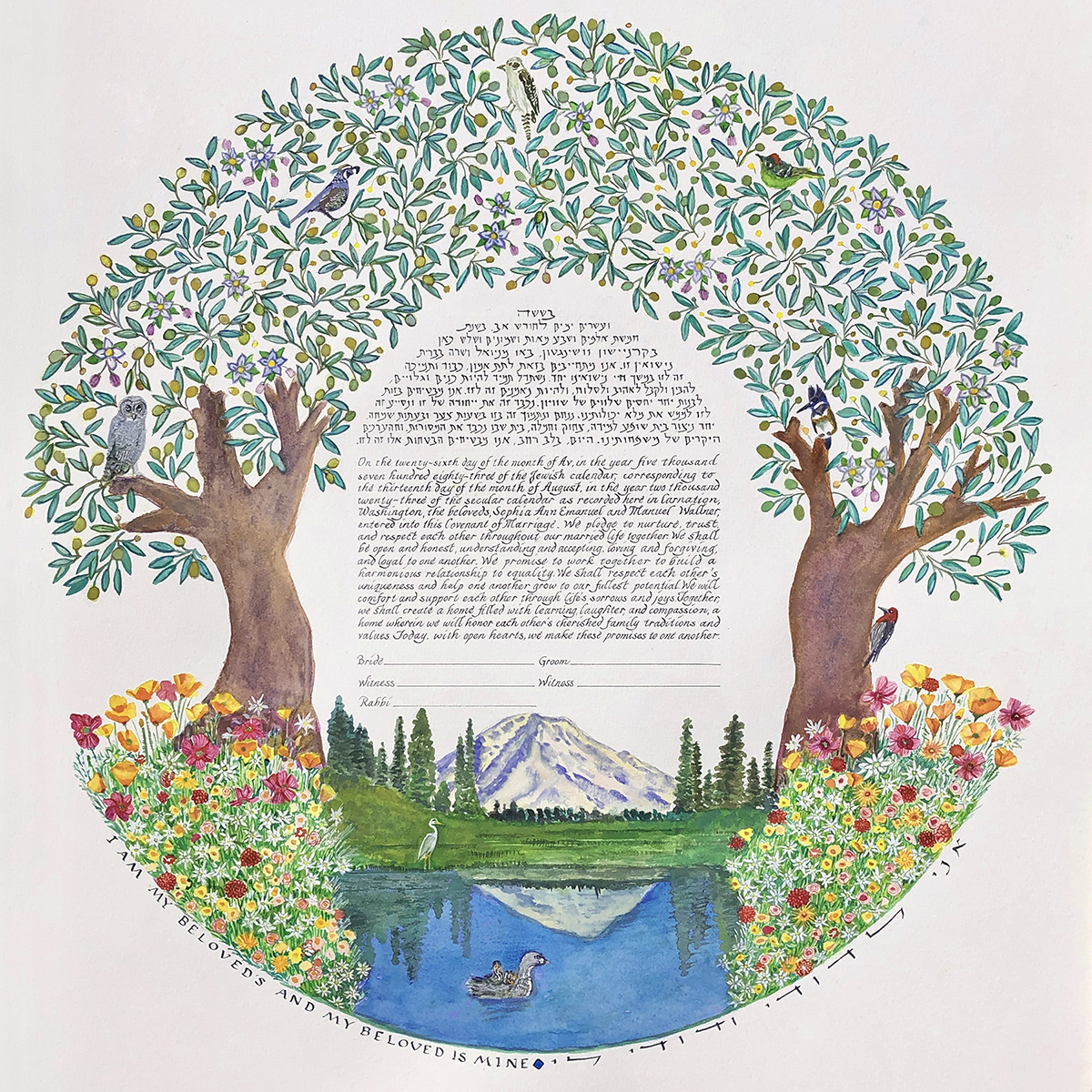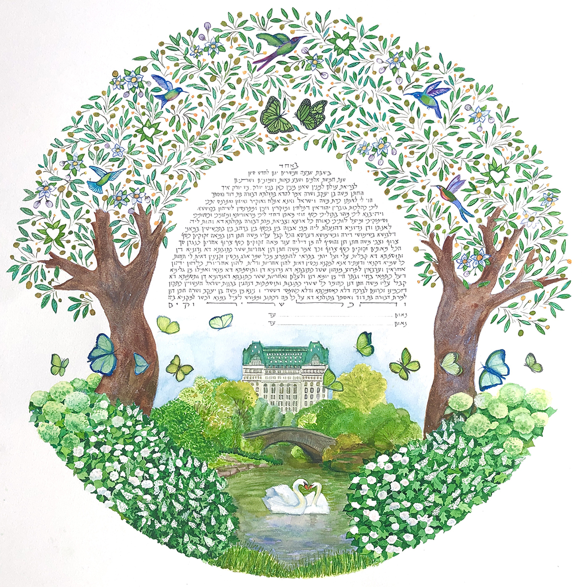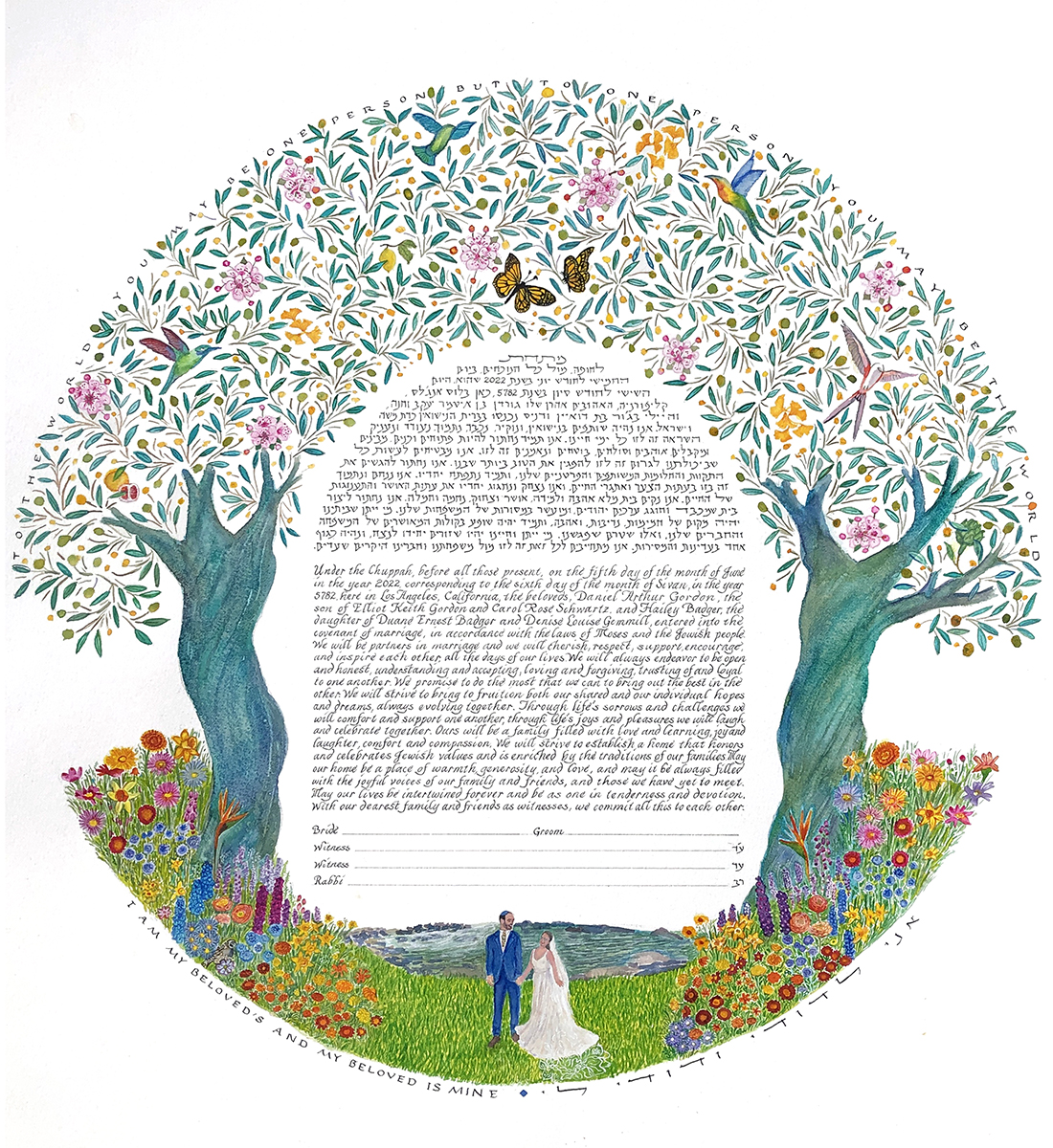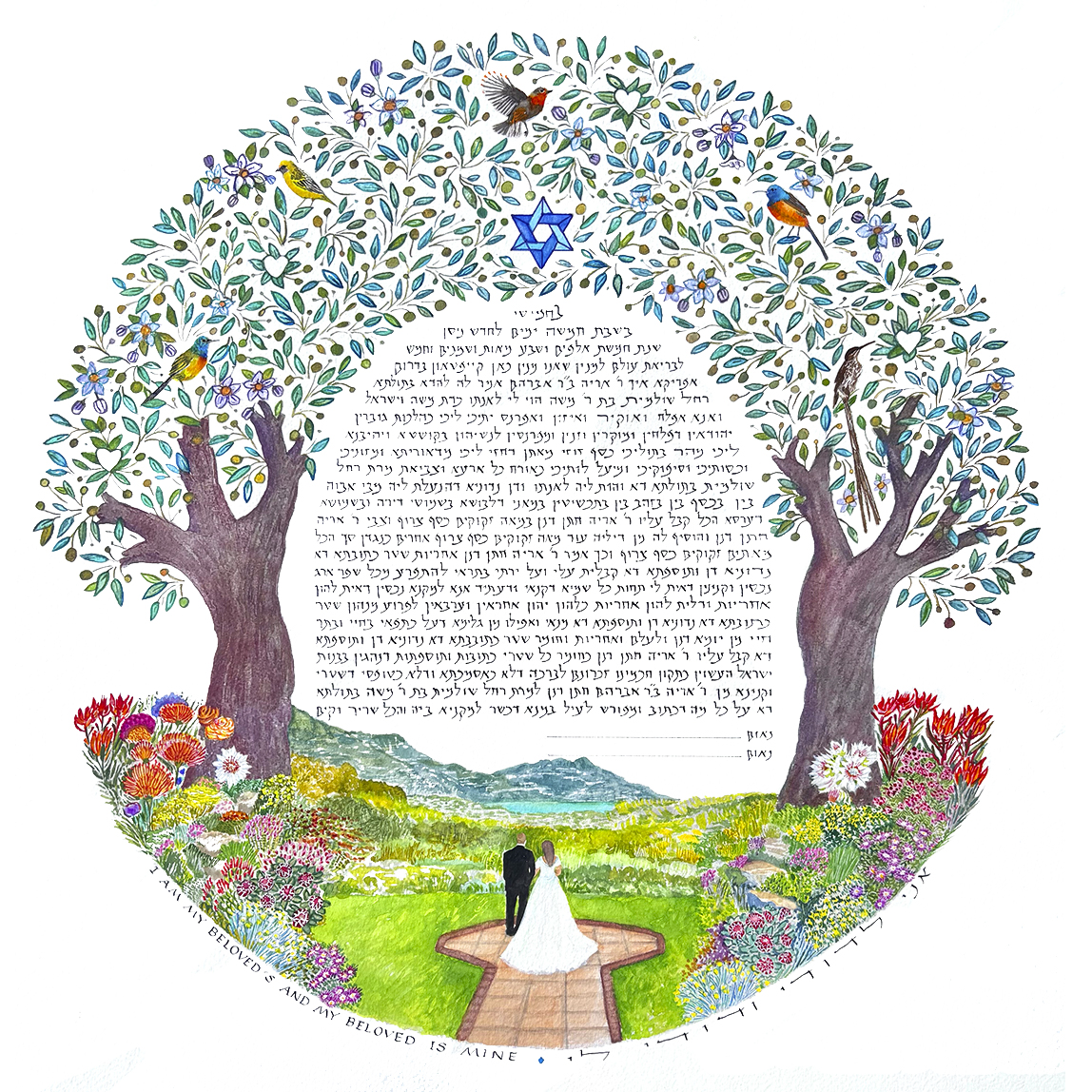 The price of a ketubah print includes one of my text combinations. You can decide to leave the fill-ins (names, date of wedding, etc.) blank for your officiant to complete, or have me personalize the texts. If you provide a different text there is an additional fee.