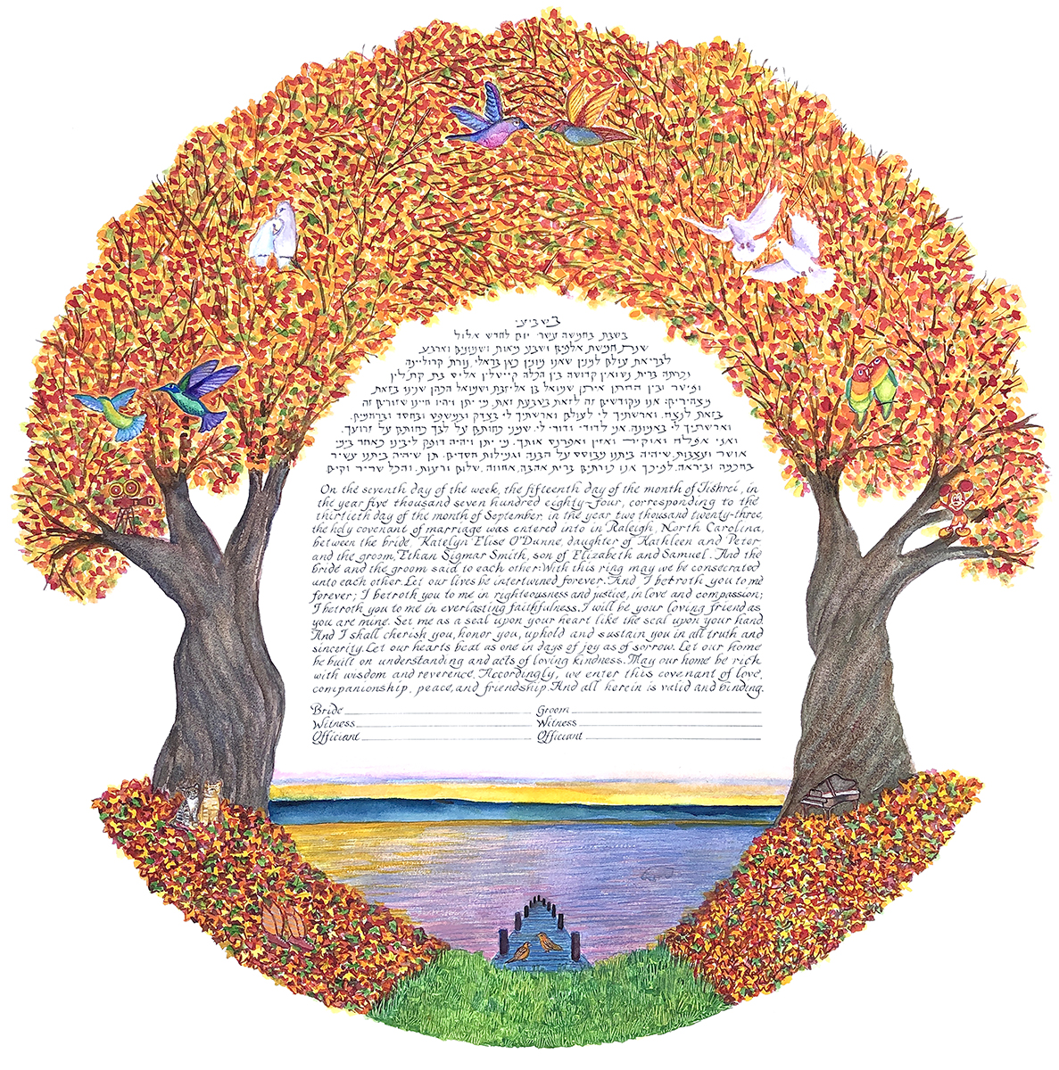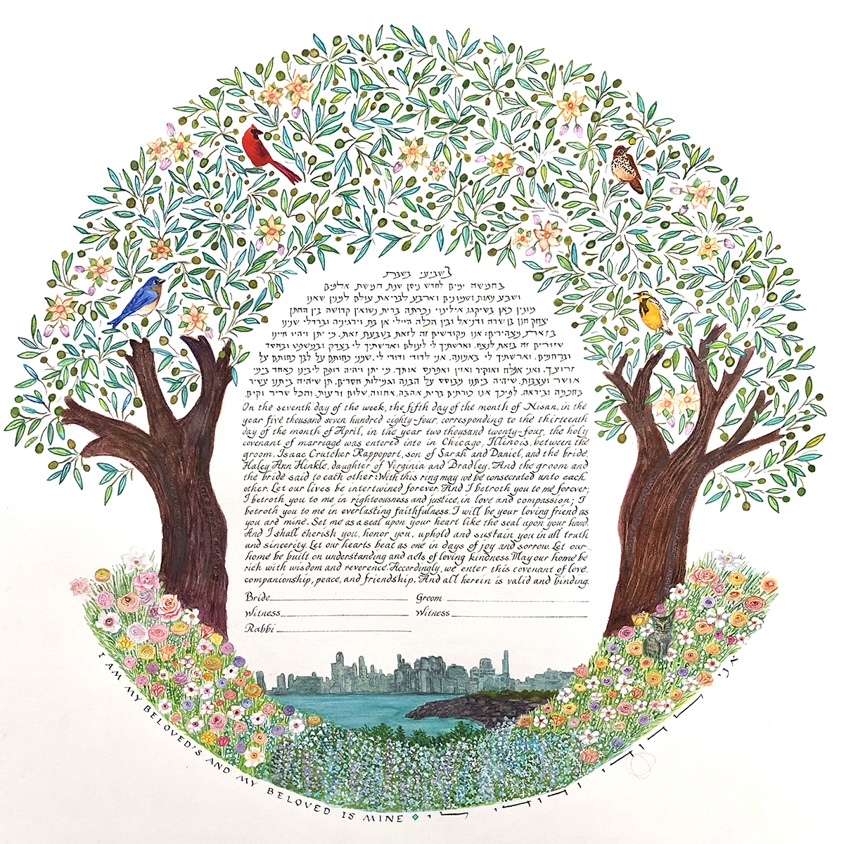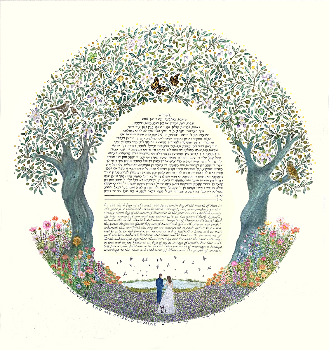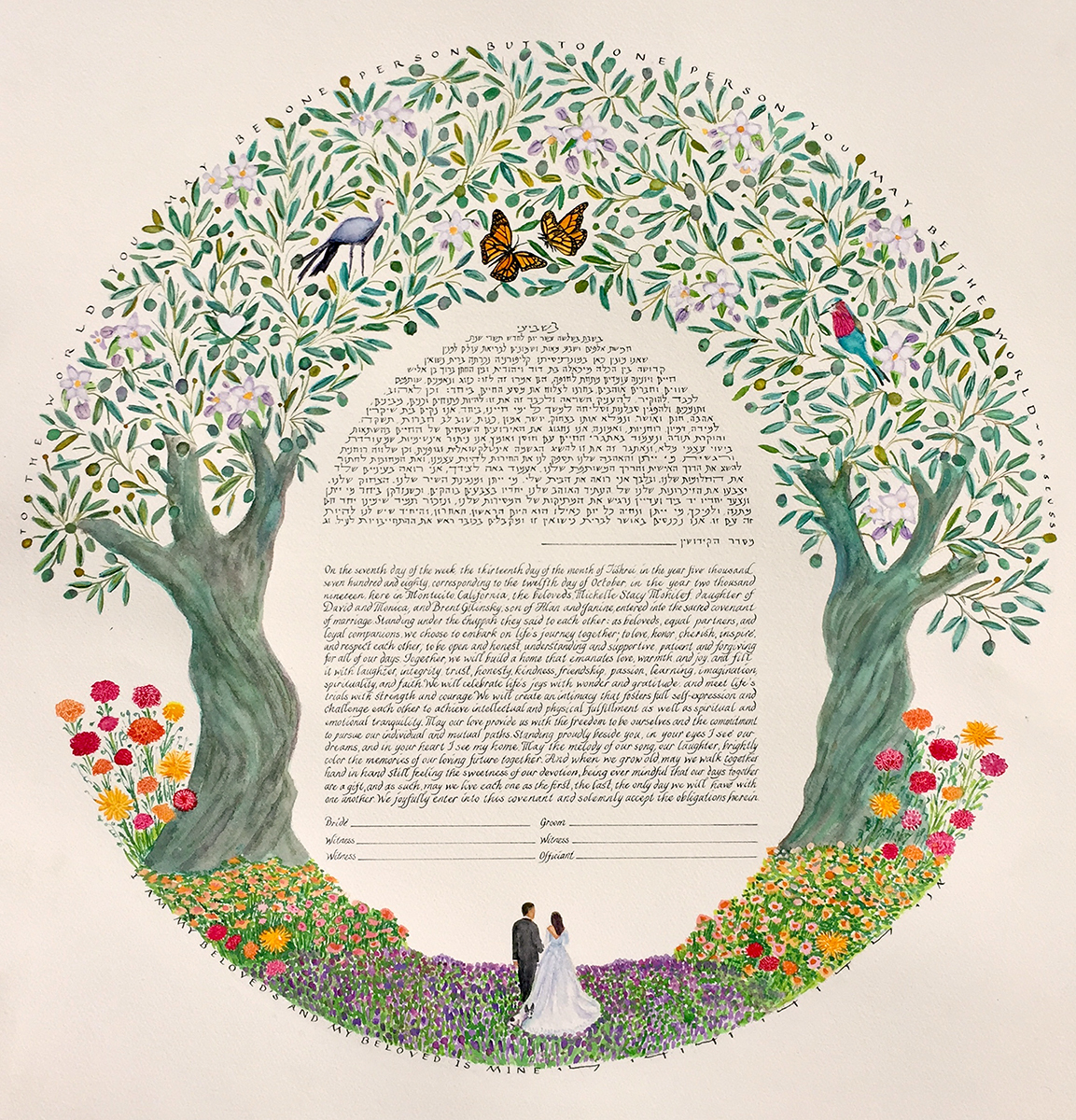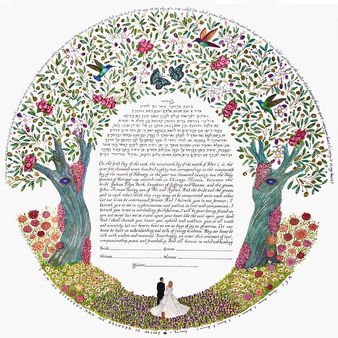 The price of a ketubah print includes one of my text combinations. You can decide to leave the fill-ins (names, date of wedding, etc.) blank for your officiant to complete, or have me personalize the texts. If you provide a different text there is an additional fee.